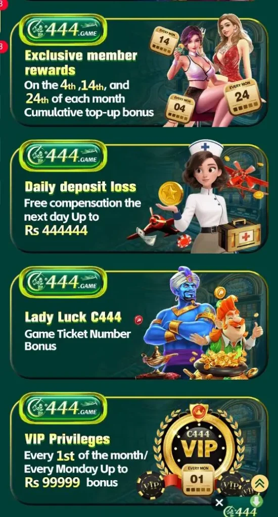 One of the most attractive features of the C444 Game is its bonus system. These bonuses help users increase their earnings and enhance their gaming experience.